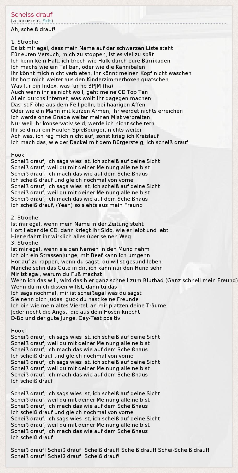 А как ты думаешь, о чем песня "Scheiss drauf" ?