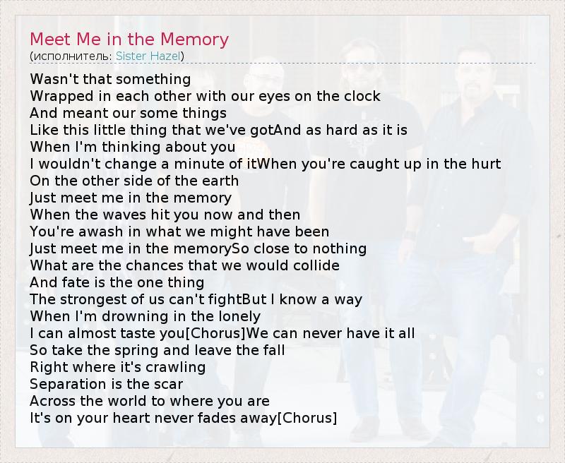А как ты думаешь, о чем песня "Meet Me in the Memory" ?