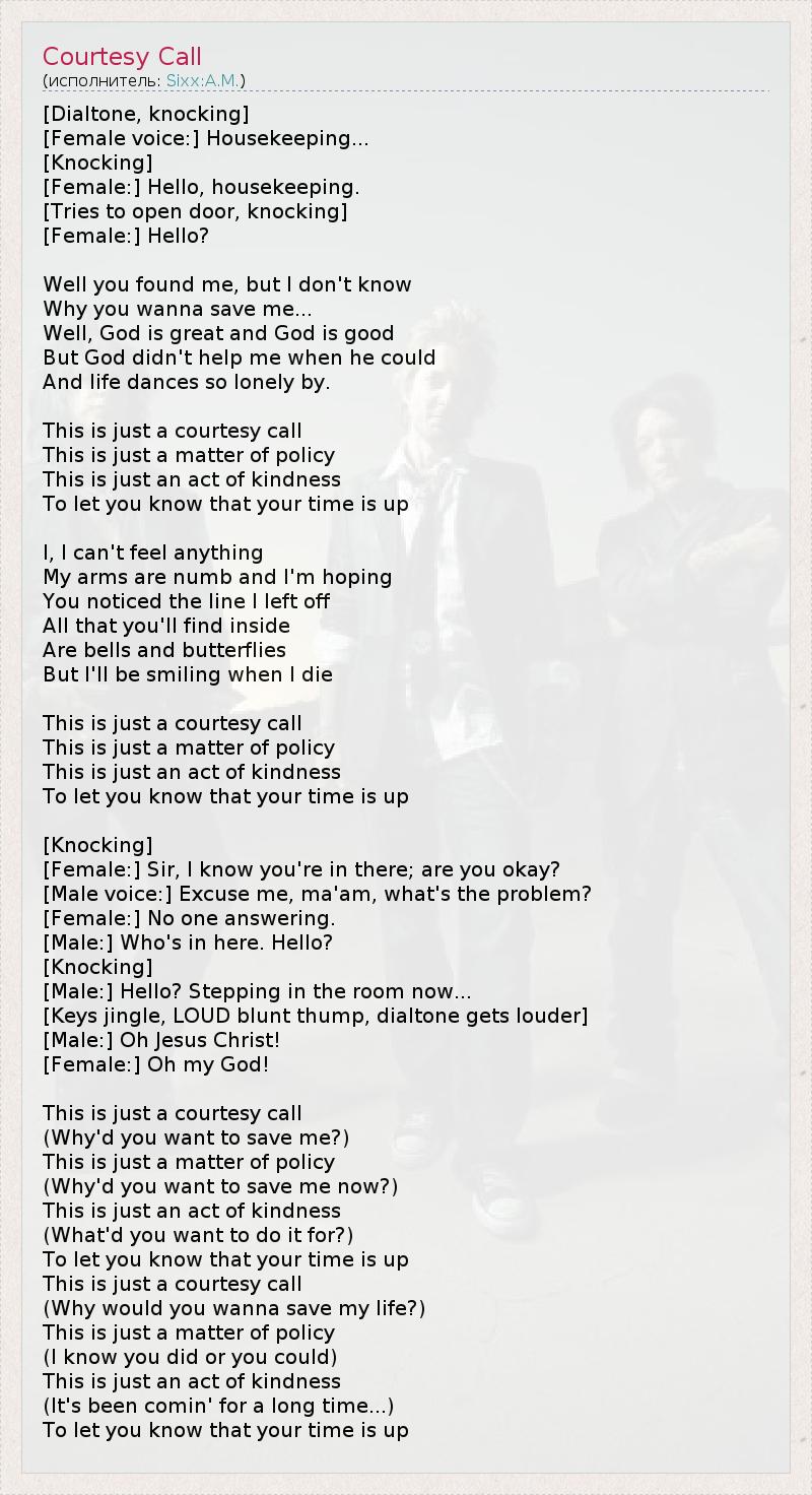 А как ты думаешь, о чем песня "Courtesy Call" ?