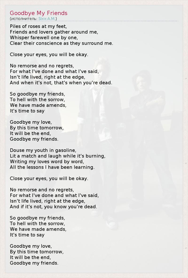 А как ты думаешь, о чем песня "Goodbye My Friends" ?