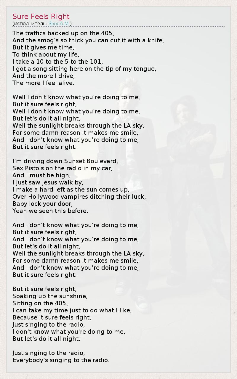 А как ты думаешь, о чем песня "Sure Feels Right" ?