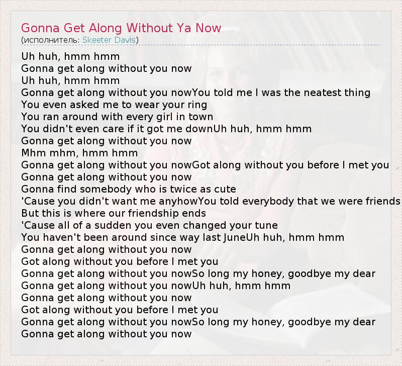 А как ты думаешь, о чем песня "Gonna Get Along Without Ya Now" ?