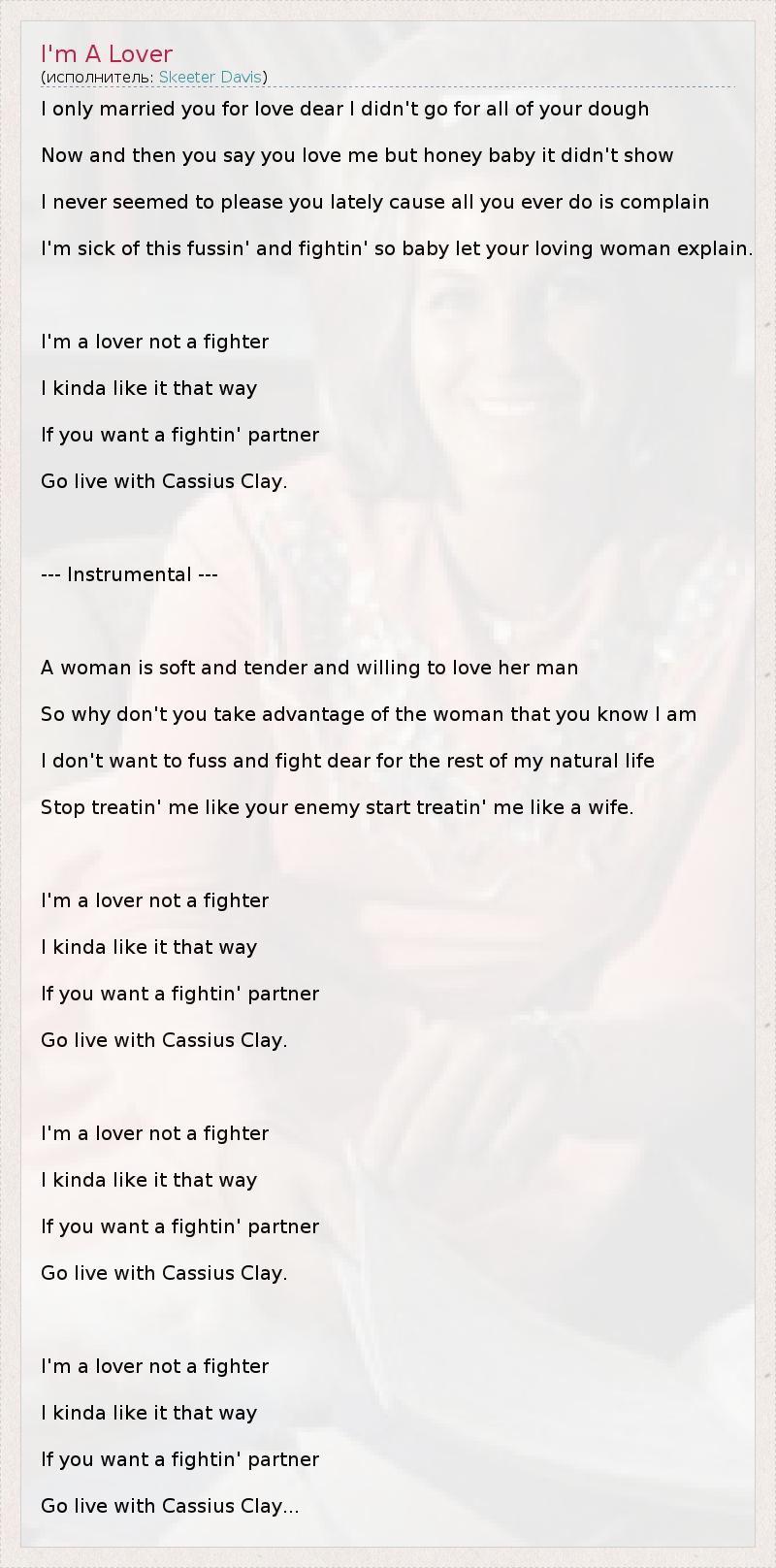 А как ты думаешь, о чем песня "I'm A Lover" ?