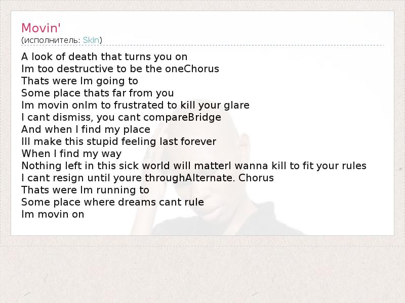 А как ты думаешь, о чем песня "Movin'" ?