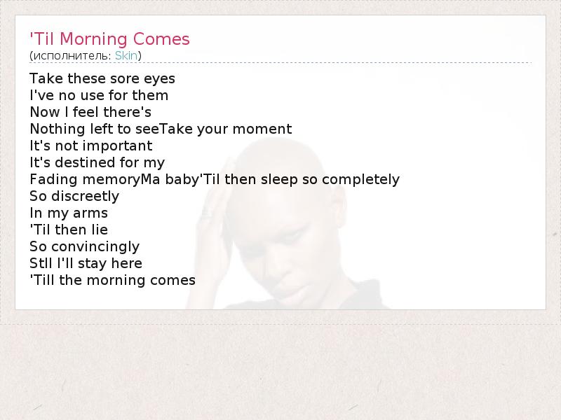 А как ты думаешь, о чем песня "'Til Morning Comes" ?