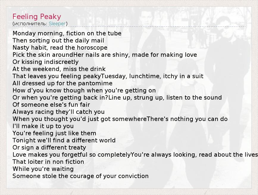 А как ты думаешь, о чем песня "Feeling Peaky" ?