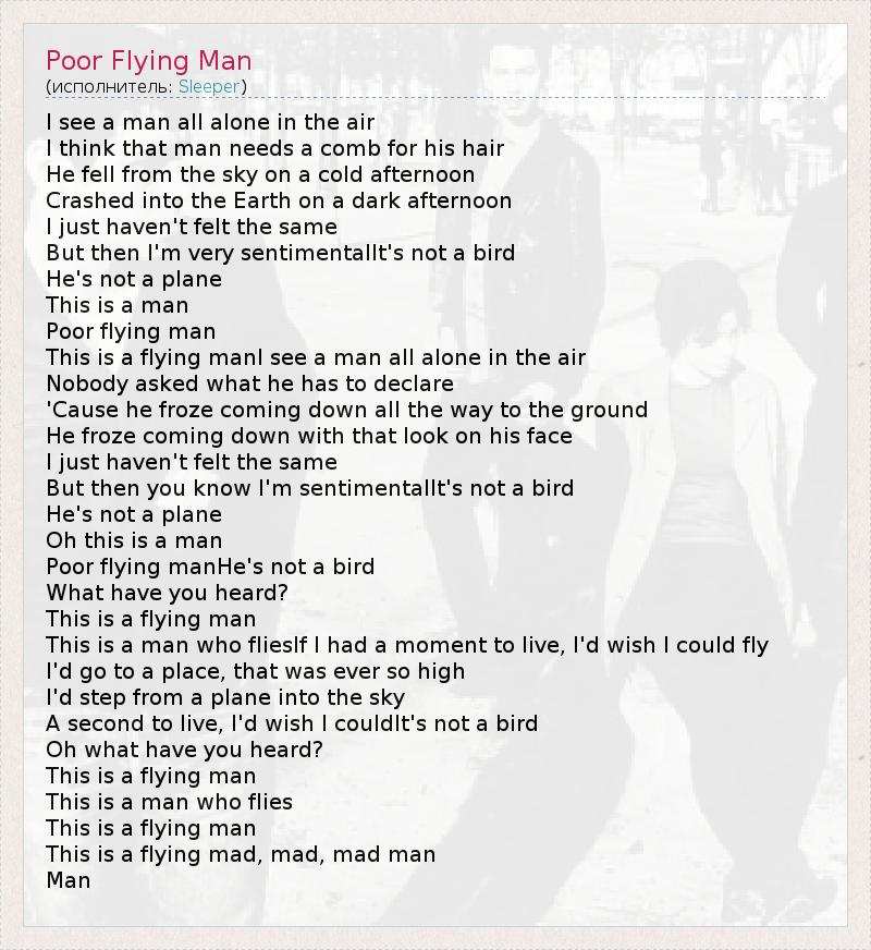 А как ты думаешь, о чем песня "Poor Flying Man" ?