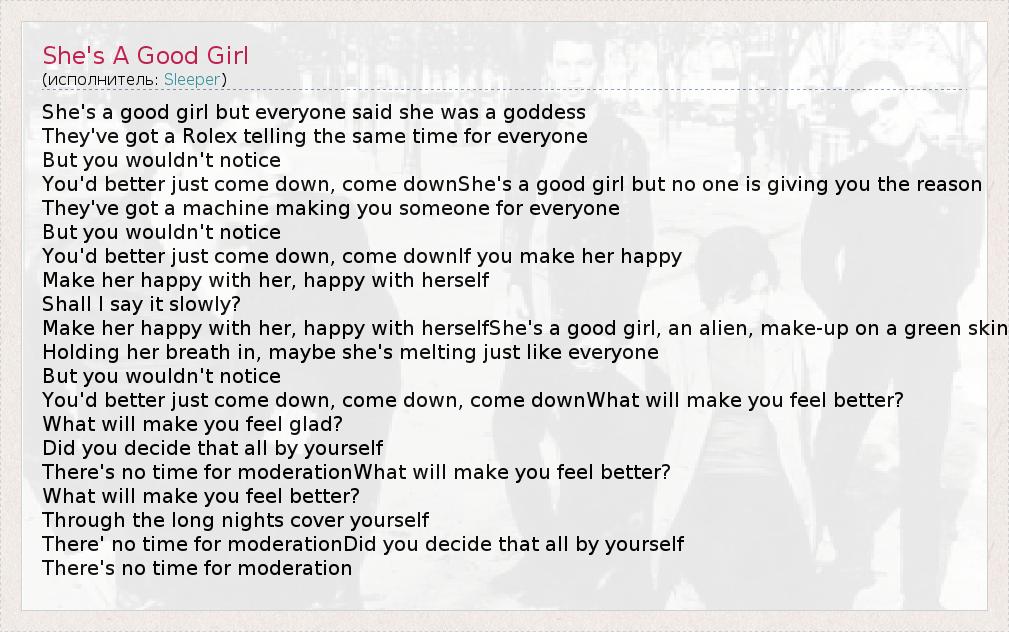 А как ты думаешь, о чем песня "She's A Good Girl" ?