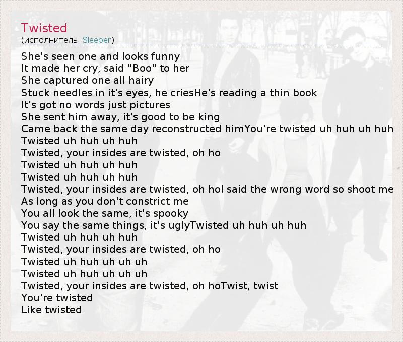 А как ты думаешь, о чем песня "Twisted" ?