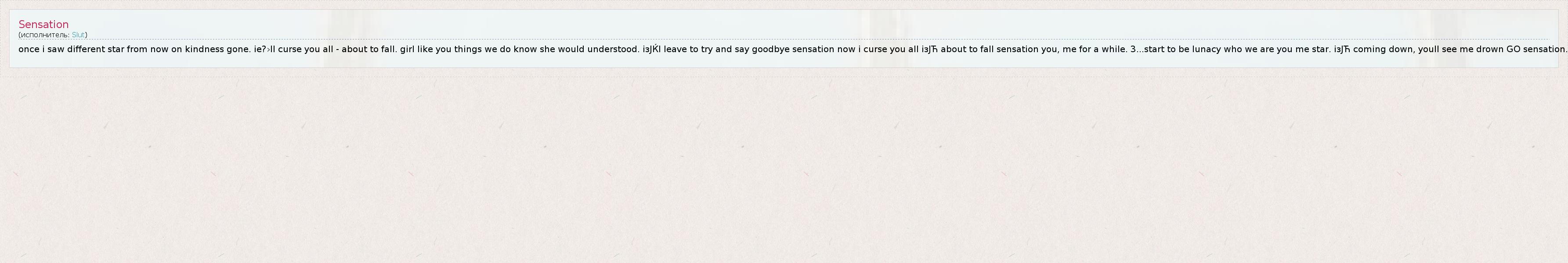 once i saw different star from now on kindness gone. iе?›ll curse you all - about to fall. girl like you things we do know she would understood. iзЈЌl leave to try and say goodbye sensation now i curse you all iзЈЋ about to fall sensation you, me for a while. 3...start to be lunacy who we are you me star. iзЈЋ coming down, youll see me drown GO sensation.