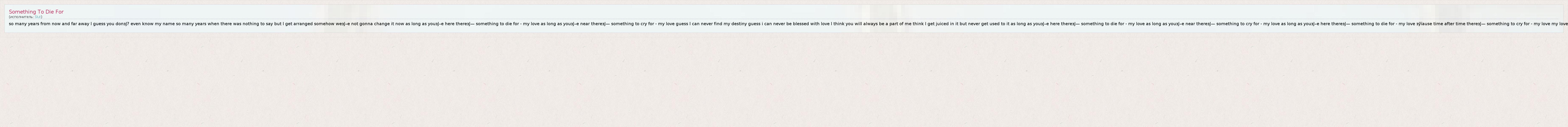 so many years from now and far away I guess you donзЈ? even know my name so many years when there was nothing to say but I get arranged somehow weзЈ–e not gonna change it now as long as youзЈ–e here thereзЈ— something to die for - my love as long as youзЈ–e near thereзЈ— something to cry for - my love guess I can never find my destiny guess i can never be blessed with love I think you will always be a part of me think I get juiced in it but never get used to it as long as youзЈ–e here thereзЈ— something to die for - my love as long as youзЈ–e near thereзЈ— something to cry for - my love as long as youзЈ–e here thereзЈ— something to die for - my love зўїause time after time thereзЈ— something to cry for - my love my love