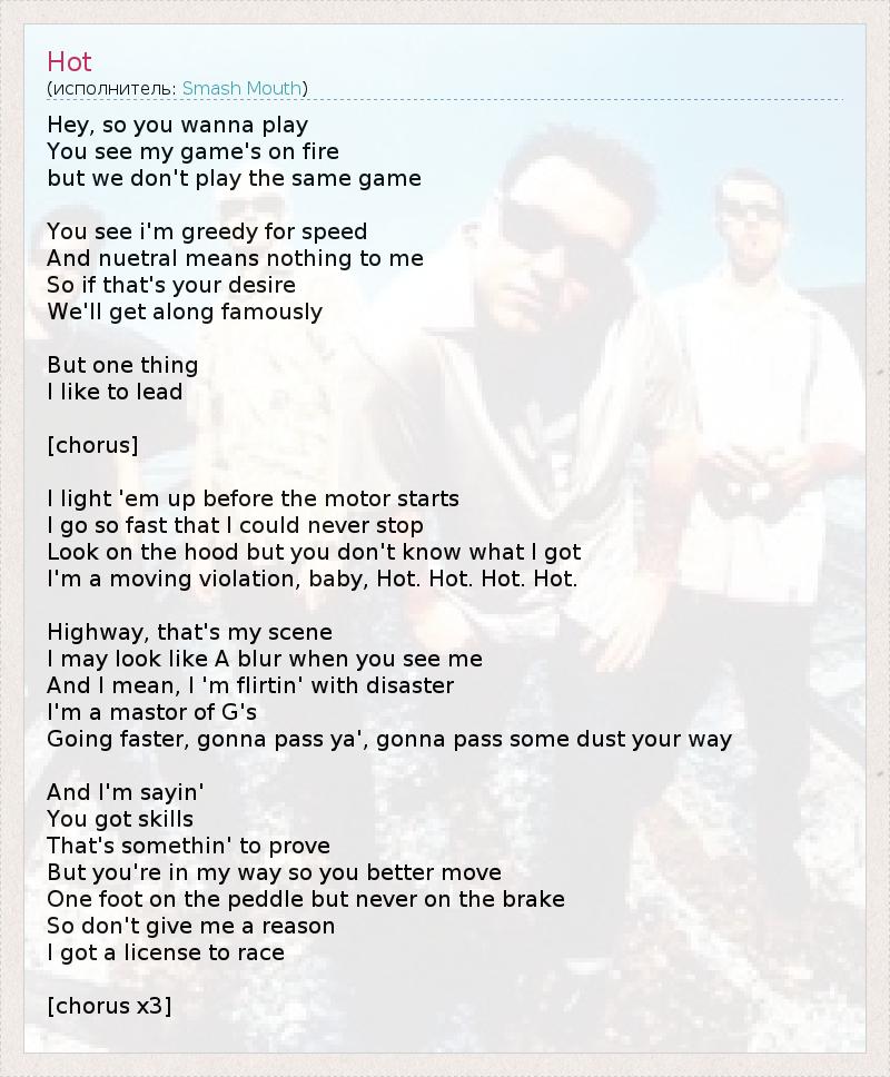 I'm a moving violation, baby, Hot. Hot. Hot. Hot.