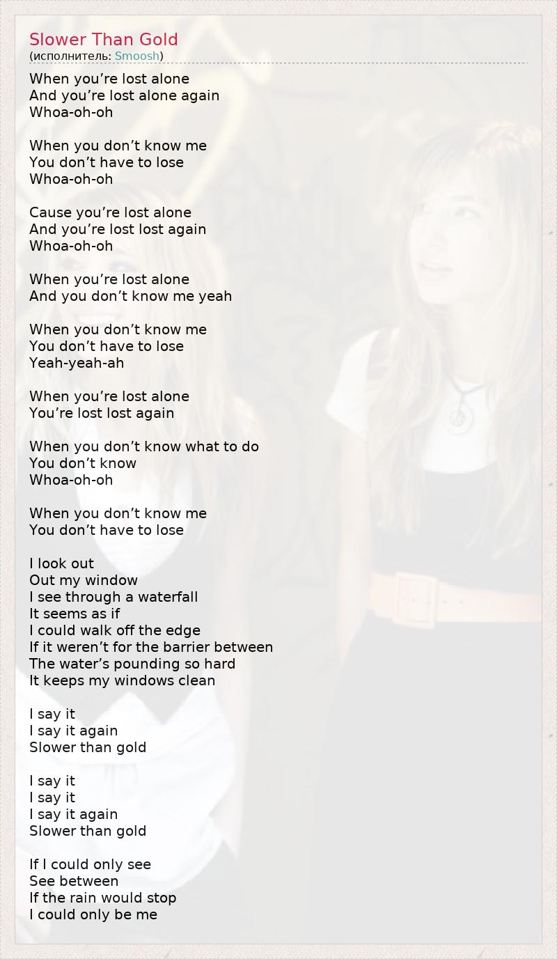 А как ты думаешь, о чем песня "Slower Than Gold" ?
