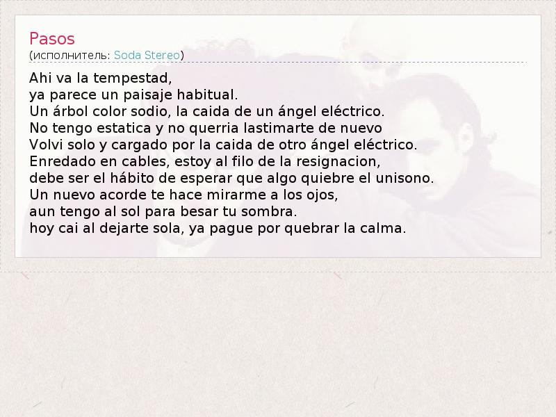 А как ты думаешь, о чем песня "Pasos" ?