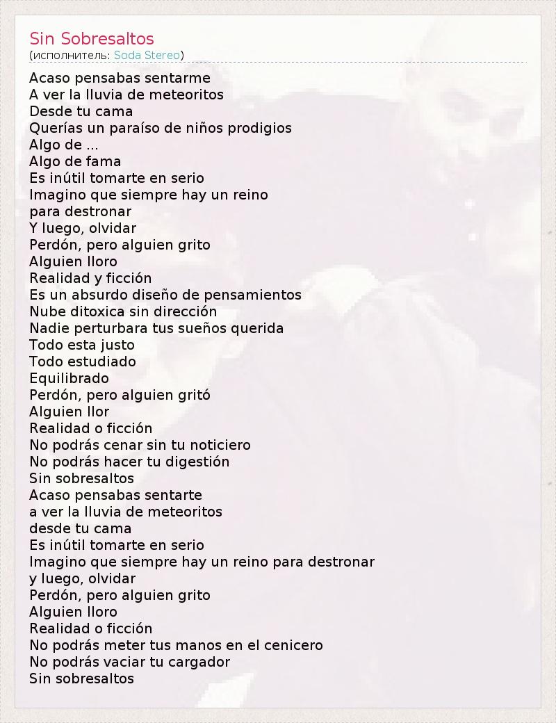 А как ты думаешь, о чем песня "Sin Sobresaltos" ?