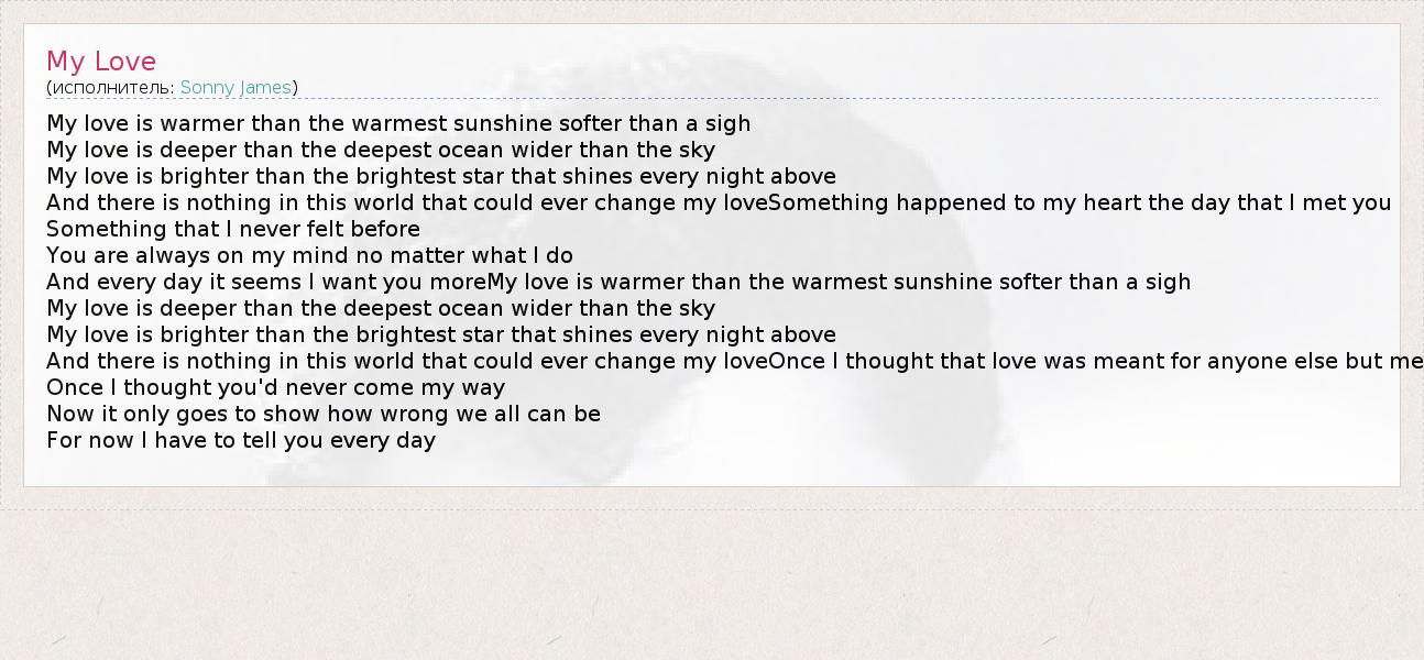 And every day it seems I want you moreMy love is warmer than the warmest sunshine softer than a sigh