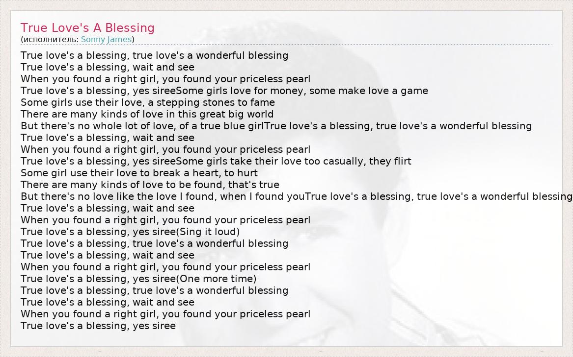 А как ты думаешь, о чем песня "True Love's A Blessing" ?