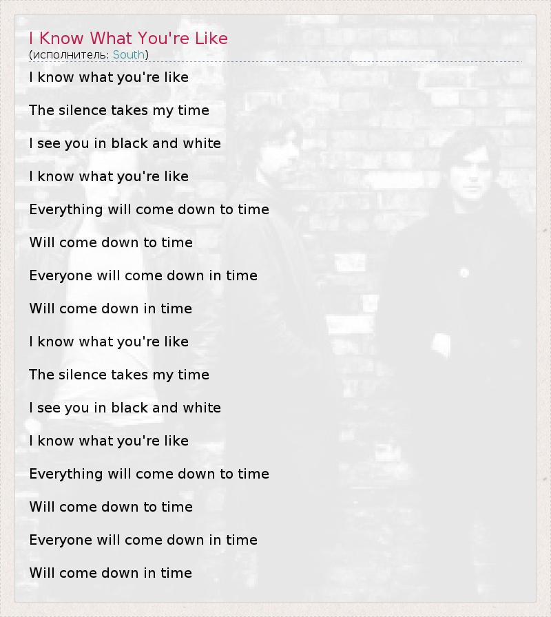 ГлавнаяИсполнителиSouthI Know What You're Like