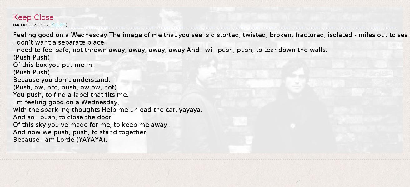 Это интересно:В состав британской группы South входят Joel Cadbury, Brett Shaw и Jamie McDonald. Все участники мультиинструменталисты и каждый из них - и гитарист, и басист, и ударник, и клавишник. Вокалист – Joel Cadbury. Группа South была сформирована в Лондоне в 1998 г. и вначале должна была исполнять электронную музыку. Группа развивалась под руководством бывшего фронтмена группы Stone Roses – Иана Брауна/Ian Brown. Позже South работали... продолжение