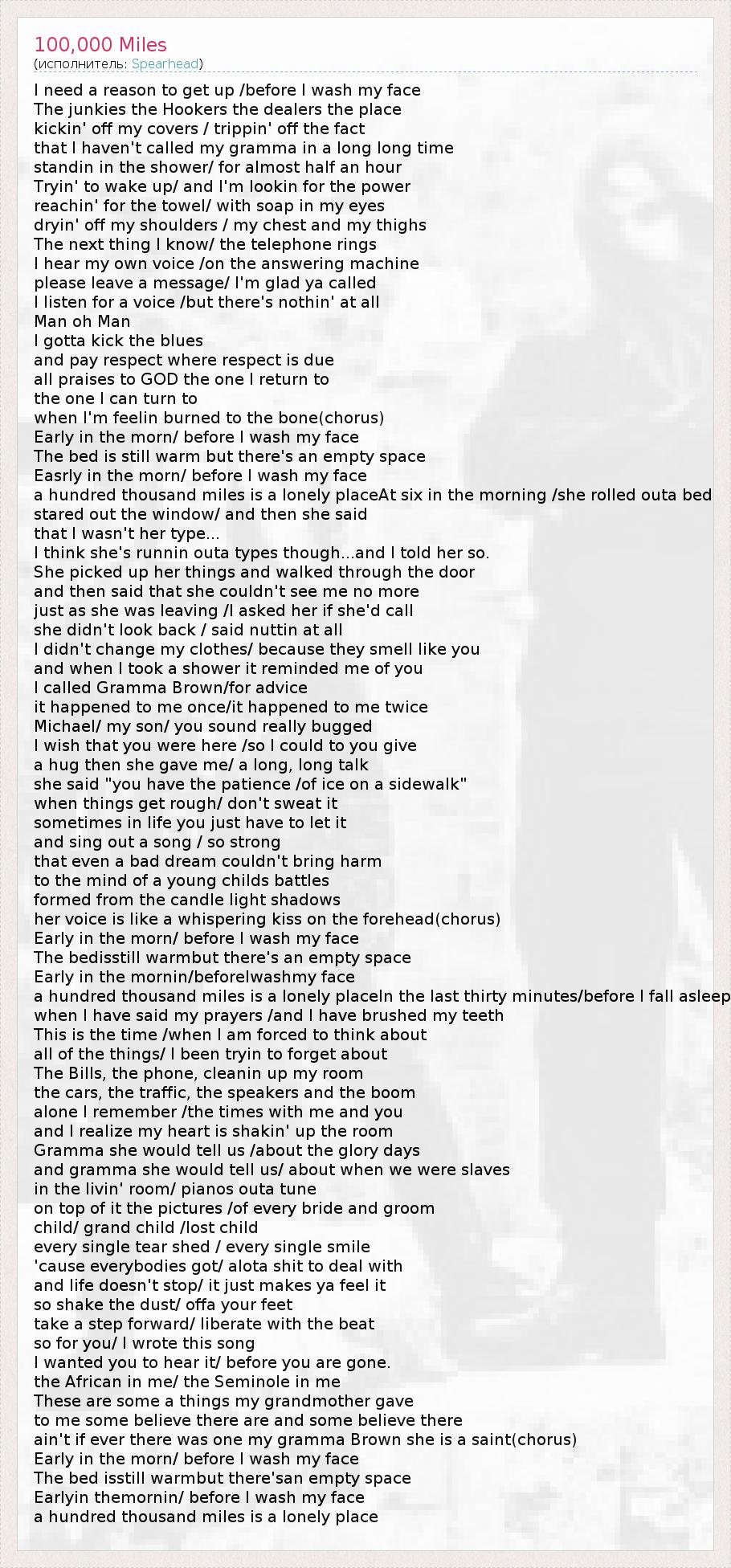 А как ты думаешь, о чем песня "100,000 Miles" ?