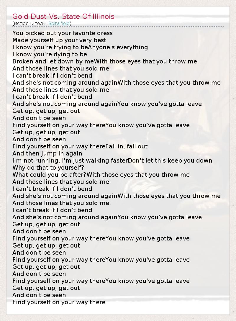 А как ты думаешь, о чем песня "Gold Dust Vs. State Of Illinois" ?