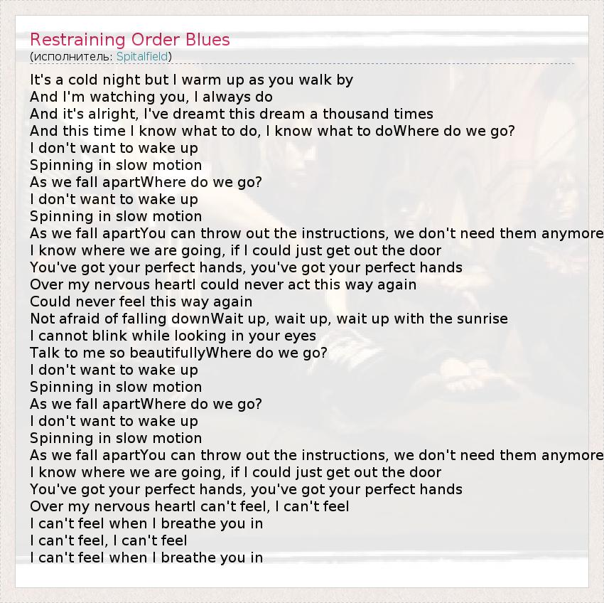 А как ты думаешь, о чем песня "Restraining Order Blues" ?
