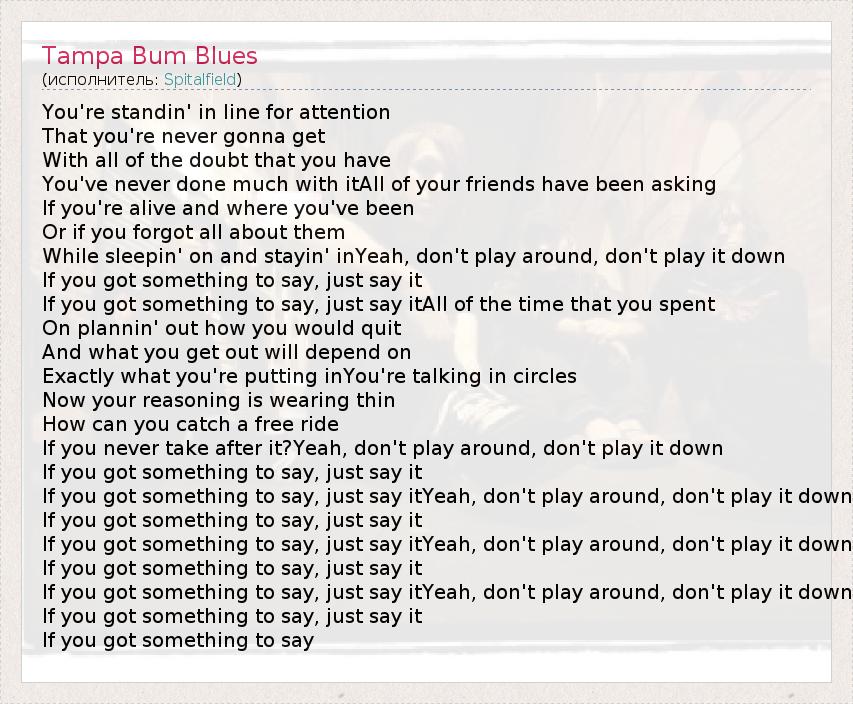 А как ты думаешь, о чем песня "Tampa Bum Blues" ?
