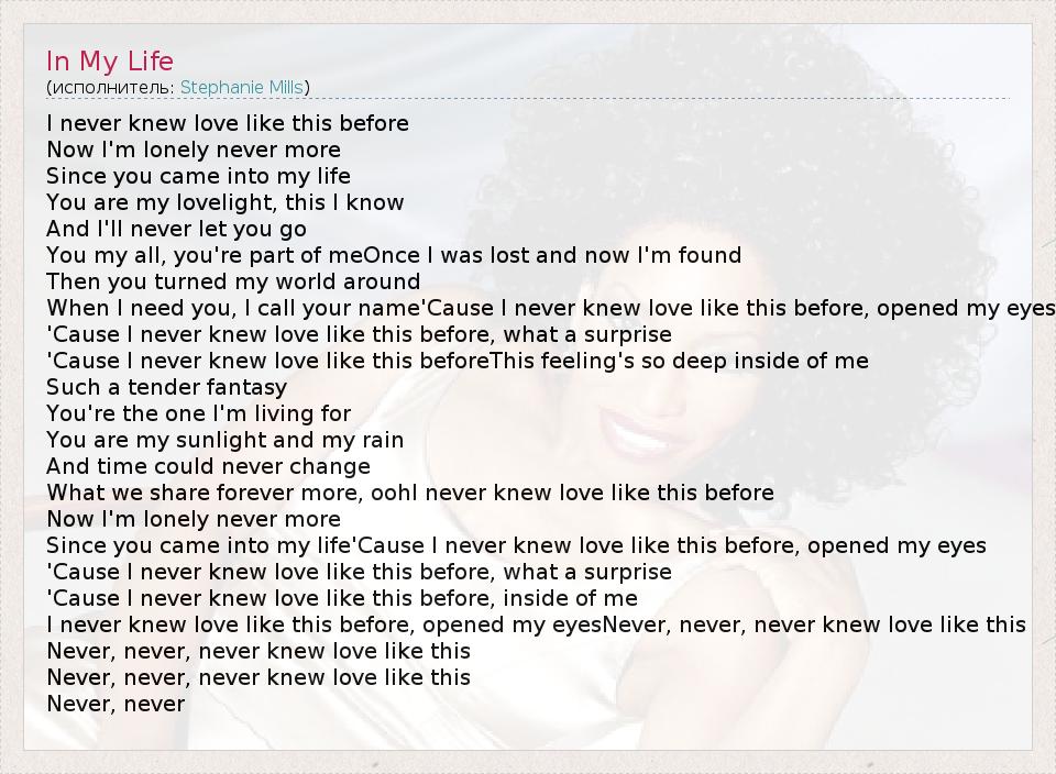 Since you came into my life'Cause I never knew love like this before, opened my eyes