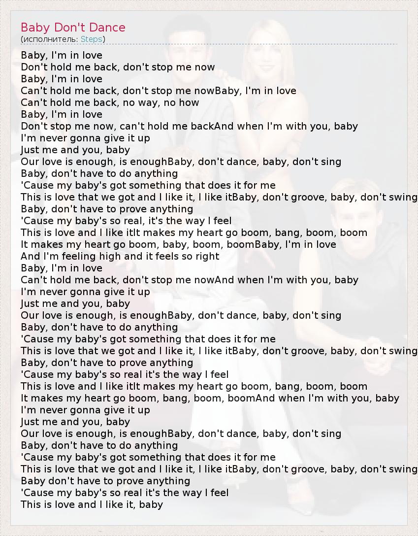 А как ты думаешь, о чем песня "Baby Don't Dance" ?