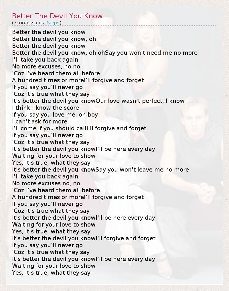 А как ты думаешь, о чем песня "Better The Devil You Know" ?