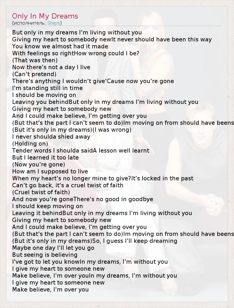 А как ты думаешь, о чем песня "Only In My Dreams" ?