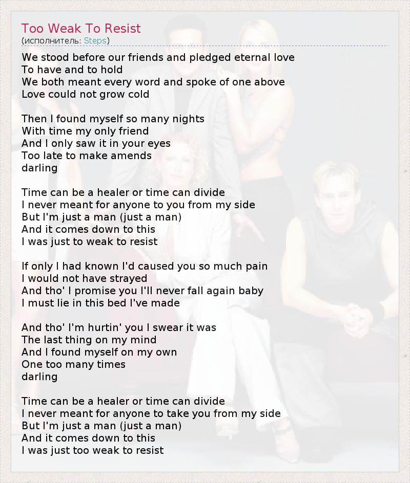 А как ты думаешь, о чем песня "Too Weak To Resist" ?