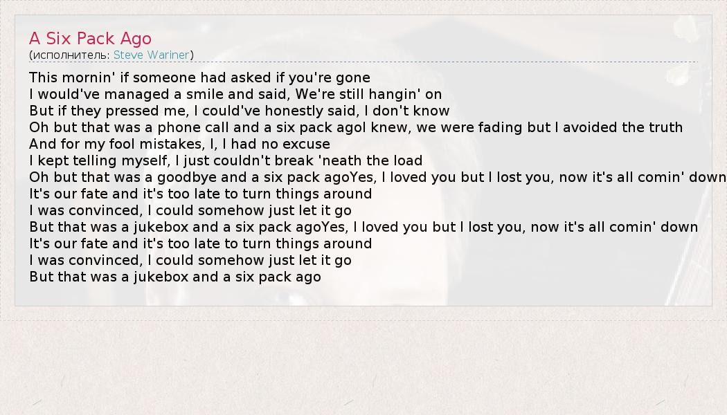 А как ты думаешь, о чем песня "A Six Pack Ago" ?