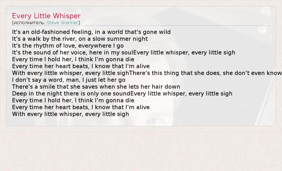 А как ты думаешь, о чем песня "Every Little Whisper" ?