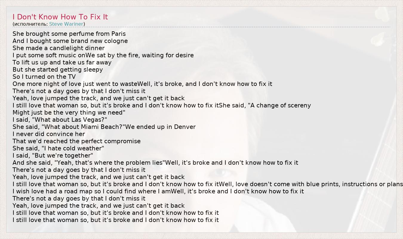 ГлавнаяИсполнителиSteve WarinerI Don't Know How To Fix It