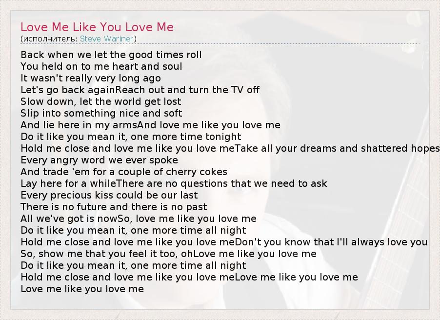 А как ты думаешь, о чем песня "Love Me Like You Love Me" ?