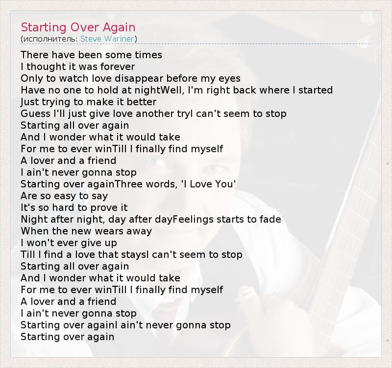 А как ты думаешь, о чем песня "Starting Over Again" ?