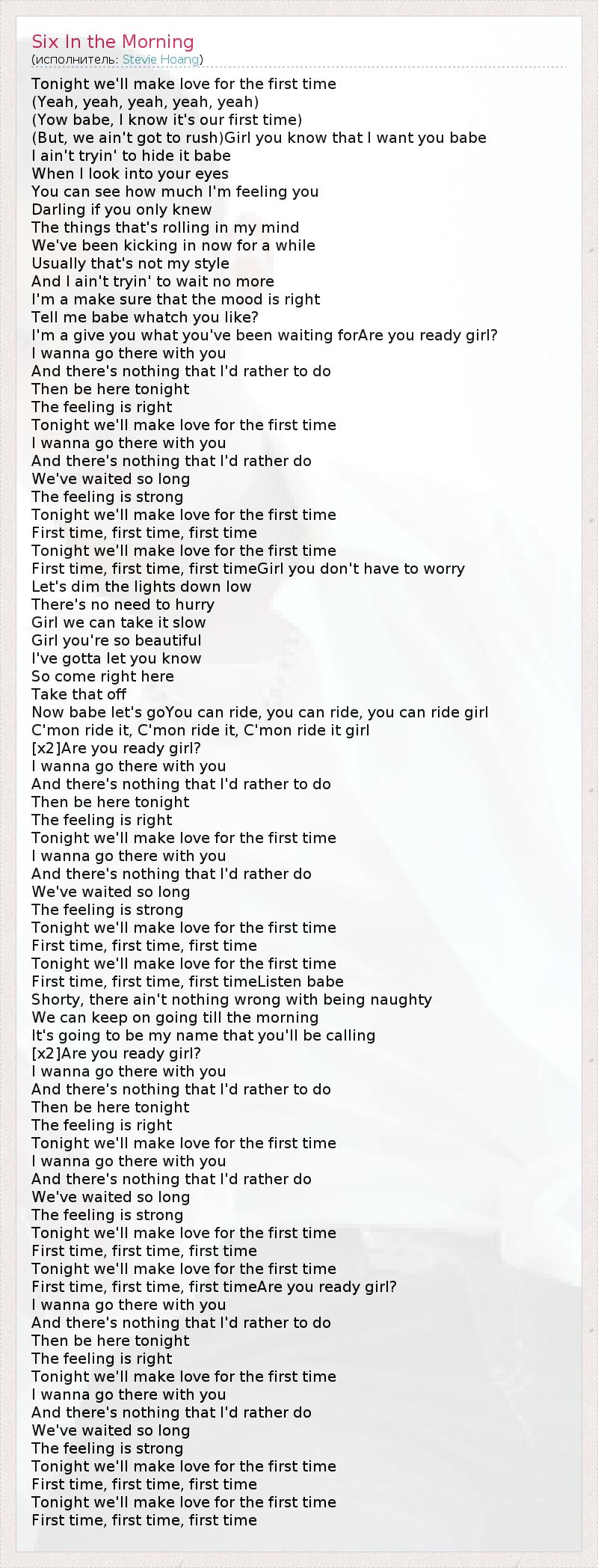 А как ты думаешь, о чем песня "Six In the Morning" ?