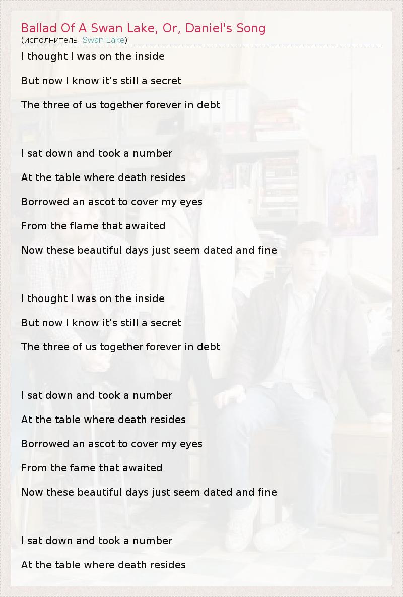 А как ты думаешь, о чем песня "Ballad Of A Swan Lake, Or, Daniel's Song" ?