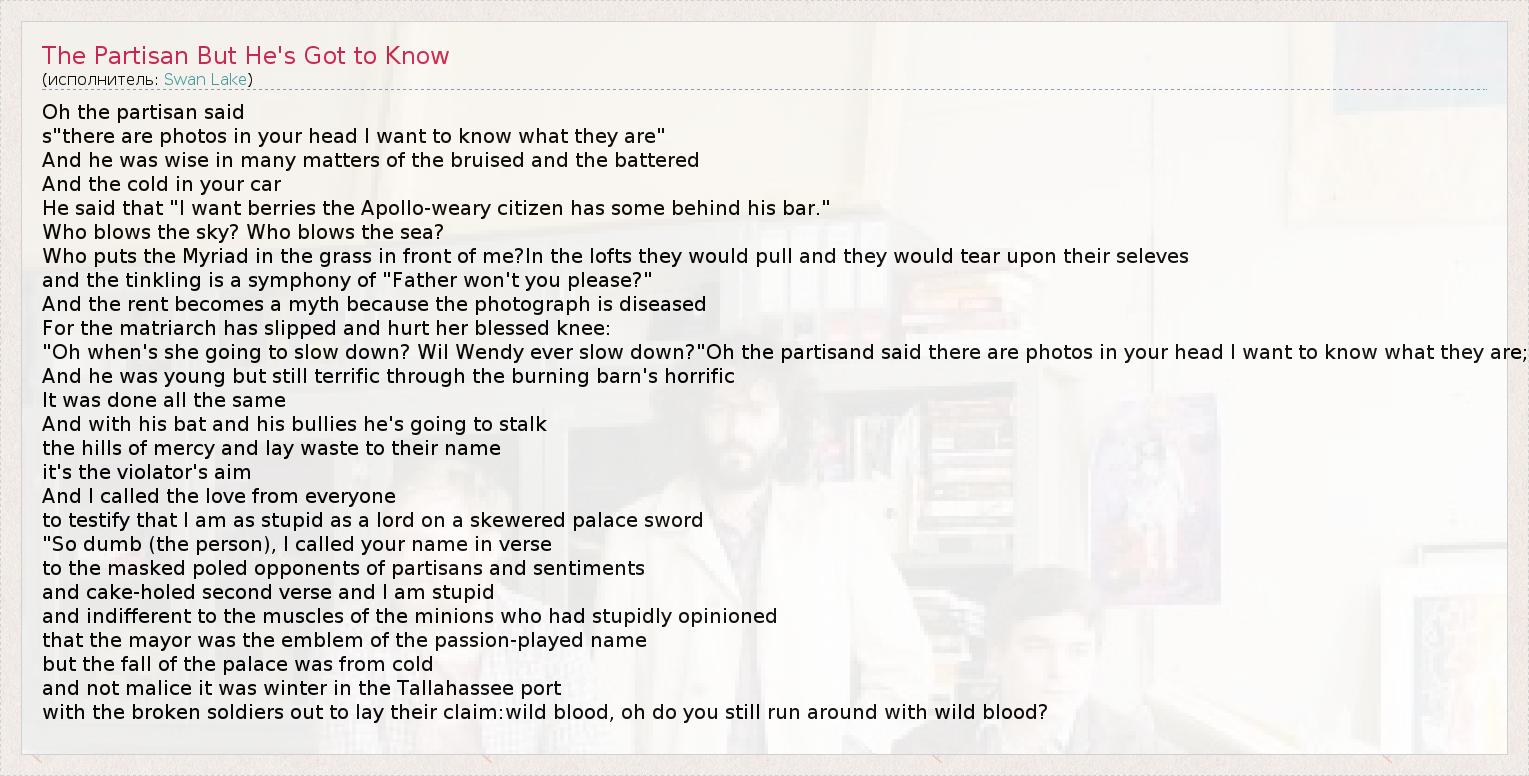 А как ты думаешь, о чем песня "The Partisan But He's Got to Know" ?
