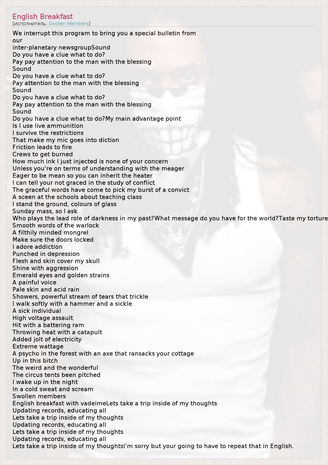 А как ты думаешь, о чем песня "English Breakfast" ?
