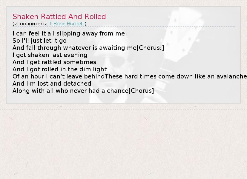 ГлавнаяИсполнителиT-Bone BurnettShaken Rattled And Rolled