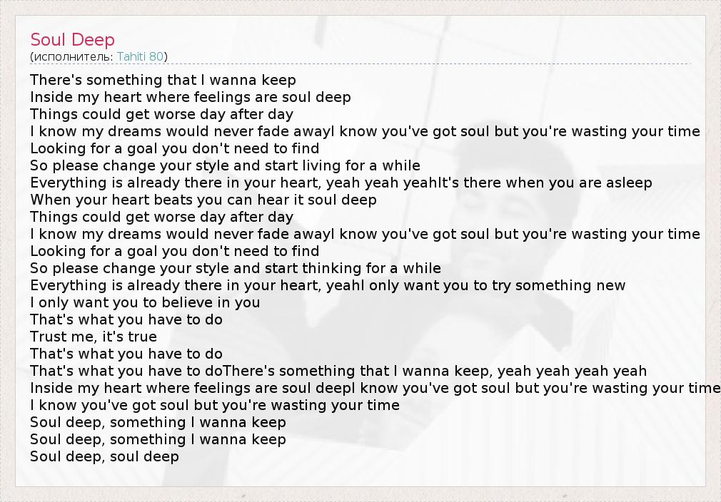 А как ты думаешь, о чем песня "Soul Deep" ?