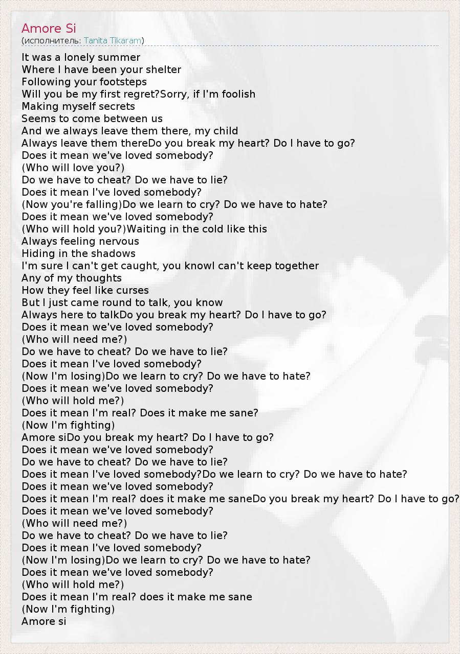 Amore siDo you break my heart? Do I have to go?