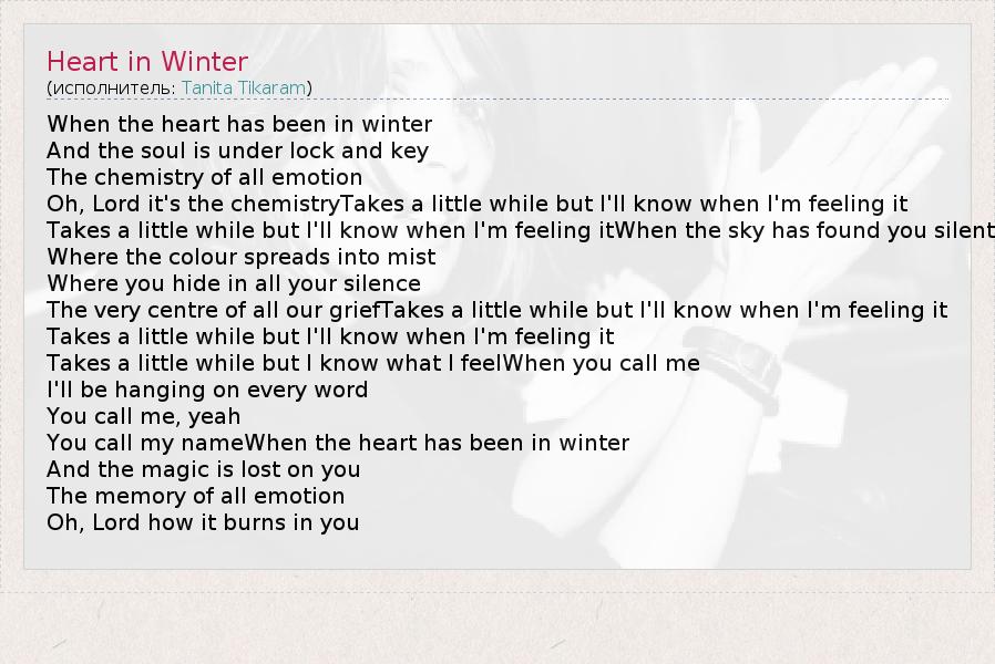 А как ты думаешь, о чем песня "Heart in Winter" ?