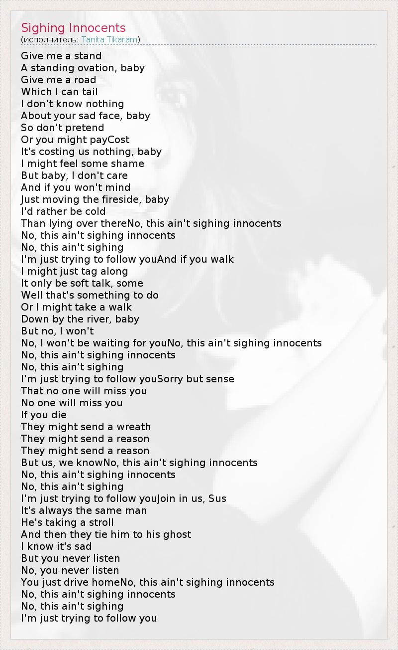 А как ты думаешь, о чем песня "Sighing Innocents" ?