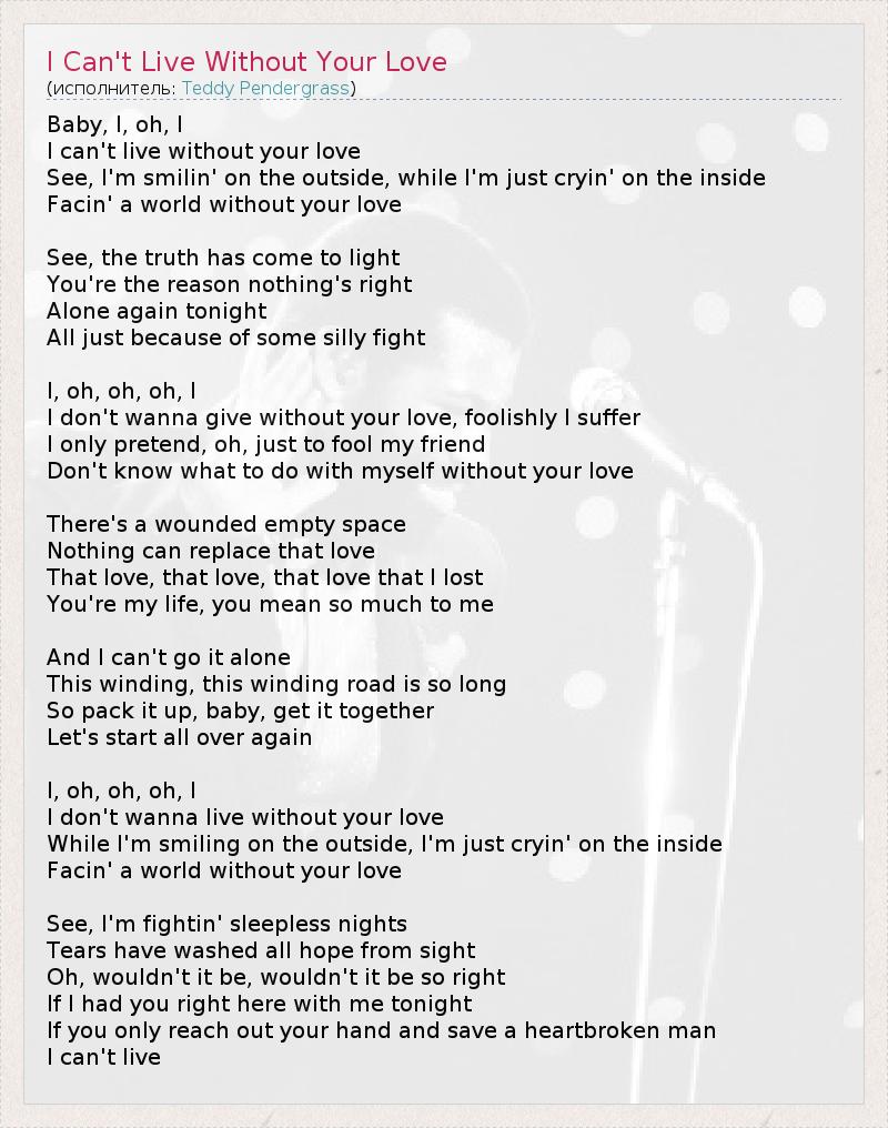 А как ты думаешь, о чем песня "I Can't Live Without Your Love" ?