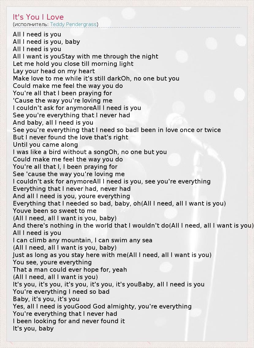 It's you, it's you, it's you, it's you, it's youBaby, all I need is you