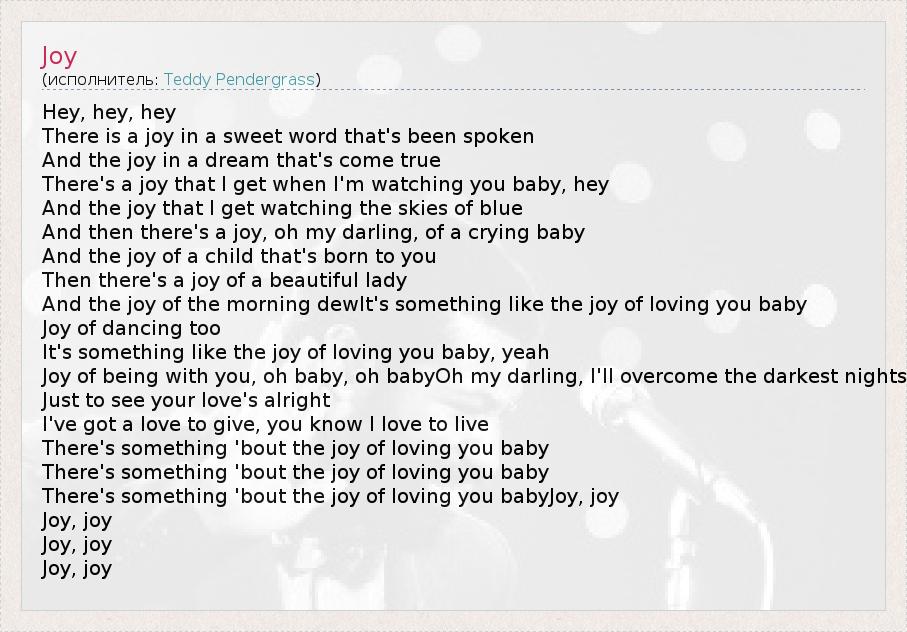 And the joy of the morning dewIt's something like the joy of loving you baby