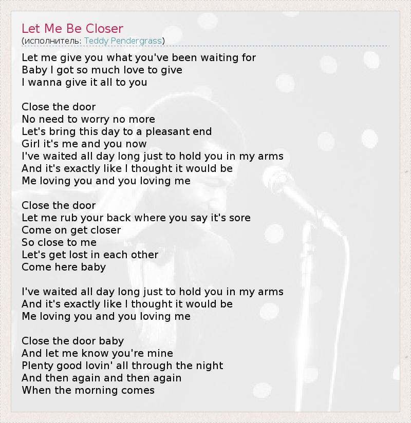 А как ты думаешь, о чем песня "Let Me Be Closer" ?